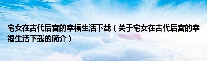 本文關于宅女在古代后宮的幸福生活下載的簡介就講解完畢,希望對大家有所幫助。