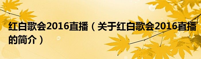 本文關于紅白歌會2016直播的簡介就講解完畢,希望對大家有所幫助。