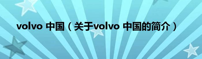 大家好,volvo 中國,關(guān)于volvo 中國的簡介很多人還不知道,現(xiàn)在讓我們一起來看看吧!
