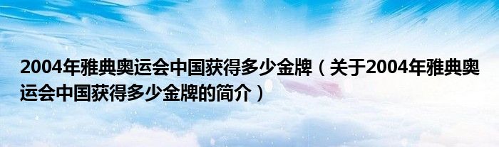 本文關于2004年雅典奧運會中國獲得多少金牌的簡介就講解完畢,希望對大家有所幫助。