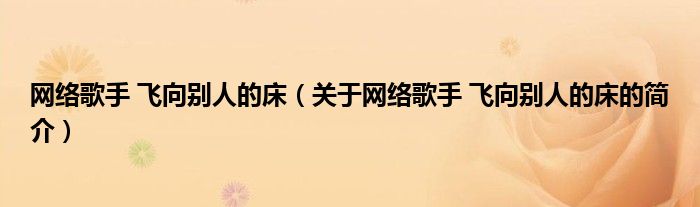 本文關于網絡歌手 飛向別人的床的簡介就講解完畢,希望對大家有所幫助。