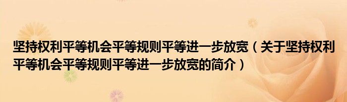 本文關于堅持權利平等機會平等規則平等進一步放寬的簡介就講解完畢,希望對大家有所幫助。