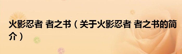 大家好,火影忍者 者之書,關于火影忍者 者之書的簡介很多人還不知道,現在讓我們一起來看看吧!