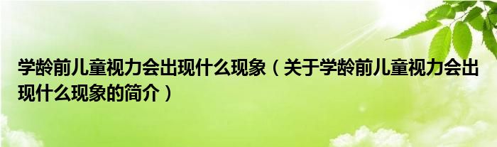 本文關于學齡前兒童視力會出現什么現象的簡介就講解完畢,希望對大家有所幫助。