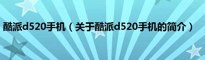 本文關于酷派d520手機的簡介就講解完畢,希望對大家有所幫助。