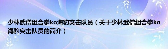 本文關(guān)于少林武僧組合拳ko海豹突擊隊(duì)員的簡(jiǎn)介就講解完畢,希望對(duì)大家有所幫助。