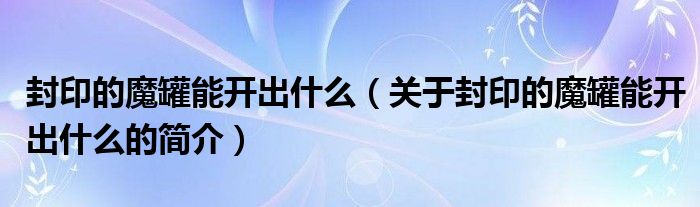 本文關于封印的魔罐能開出什么的簡介就講解完畢,希望對大家有所幫助。