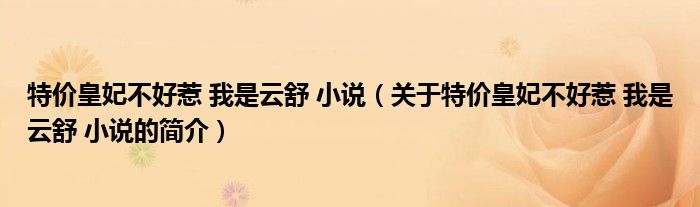 1、《特價(jià)皇妃不好惹》是由作者我是云舒所創(chuàng)作的一部穿越小說(shuō)。