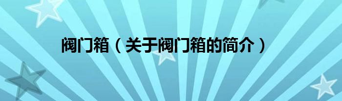 本文關于閥門箱的簡介就講解完畢,希望對大家有所幫助。