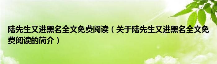 大家好,陸先生又進黑名全文免費閱讀,關于陸先生又進黑名全文免費閱讀的簡介很多人還不知道,現在讓我們一起來看看吧!