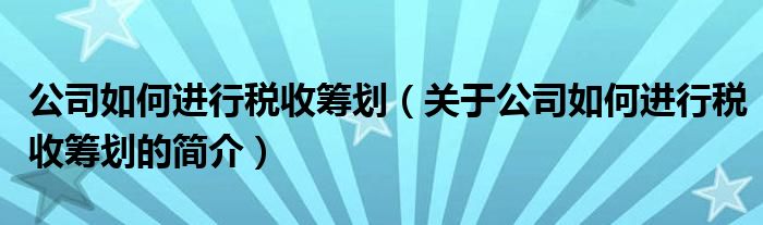 本文關(guān)于公司如何進(jìn)行稅收籌劃的簡介就講解完畢,希望對大家有所幫助。