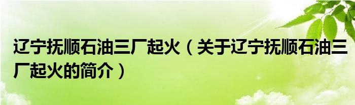 本文關于遼寧撫順石油三廠起火的簡介就講解完畢,希望對大家有所幫助。