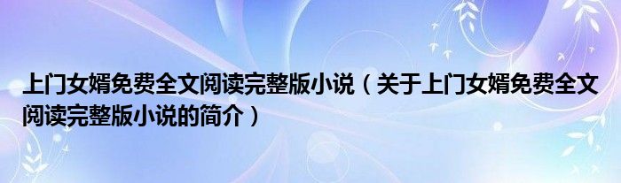 本文關(guān)于上門女婿免費(fèi)全文閱讀完整版小說的簡介就講解完畢,希望對大家有所幫助。
