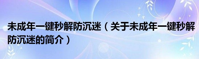 本文關于未成年一鍵秒解防沉迷的簡介就講解完畢,希望對大家有所幫助。