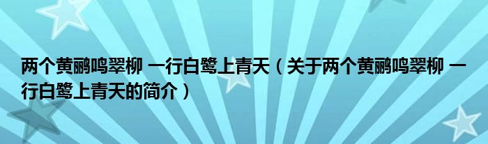 本文關于兩個黃鸝鳴翠柳 一行白鷺上青天的簡介就講解完畢,希望對大家有所幫助。
