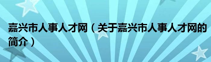 本文關于嘉興市人事人才網的簡介就講解完畢,希望對大家有所幫助。