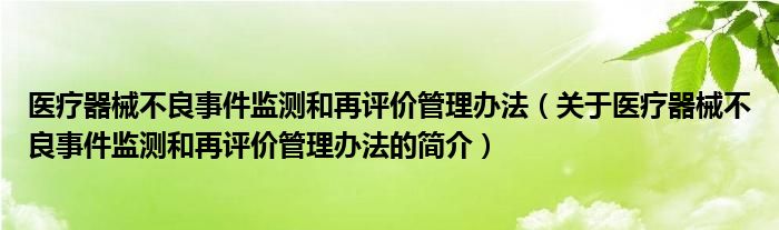 本文關(guān)于醫(yī)療器械不良事件監(jiān)測和再評價管理辦法的簡介就講解完畢,希望對大家有所幫助。