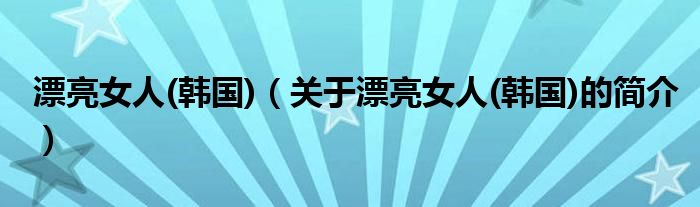 大家好,漂亮女人(韓國(guó)),關(guān)于漂亮女人(韓國(guó))的簡(jiǎn)介很多人還不知道,現(xiàn)在讓我們一起來(lái)看看吧!