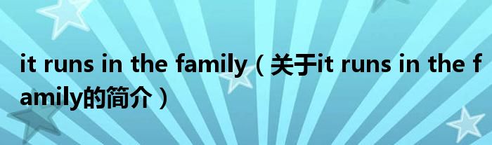 大家好,it runs in the family,關于it runs in the family的簡介很多人還不知道,現在讓我們一起來看看吧!