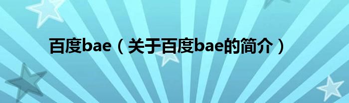 大家好,百度bae,關(guān)于百度bae的簡介很多人還不知道,現(xiàn)在讓我們一起來看看吧!