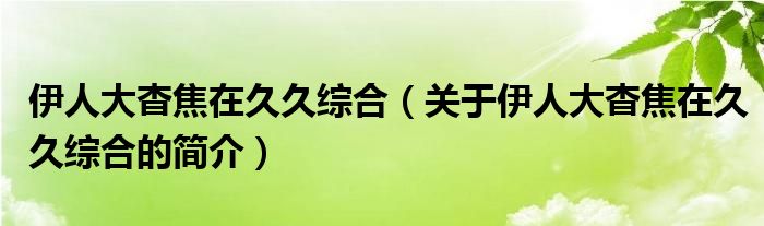 本文關于伊人大杳焦在久久綜合的簡介就講解完畢,希望對大家有所幫助。