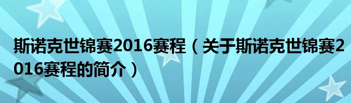 大家好,斯諾克世錦賽2016賽程,關于斯諾克世錦賽2016賽程的簡介很多人還不知道,現在讓我們一起來看看吧!