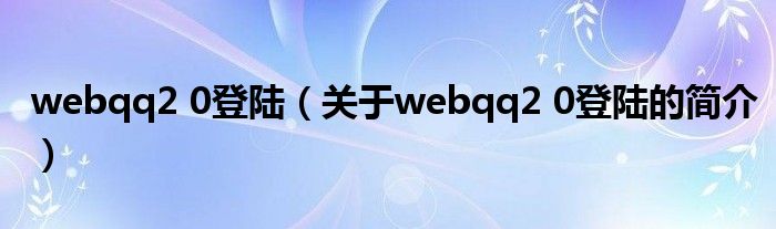 本文關(guān)于webqq2 0登陸的簡(jiǎn)介就講解完畢,希望對(duì)大家有所幫助。