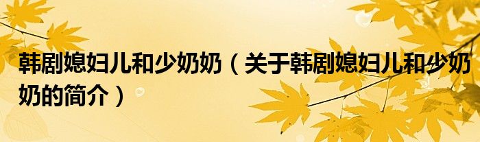 大家好,韓劇媳婦兒和少奶奶,關于韓劇媳婦兒和少奶奶的簡介很多人還不知道,現(xiàn)在讓我們一起來看看吧!