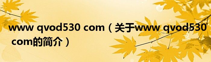 大家好,www qvod530 com,關(guān)于www qvod530 com的簡介很多人還不知道,現(xiàn)在讓我們一起來看看吧!