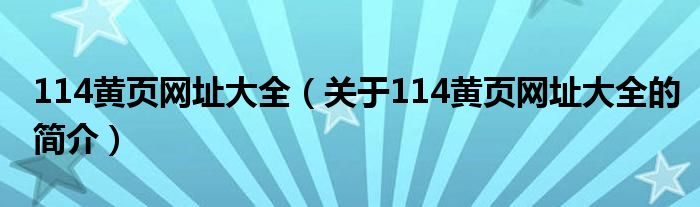 本文關(guān)于114黃頁(yè)網(wǎng)址大全的簡(jiǎn)介就講解完畢,希望對(duì)大家有所幫助。