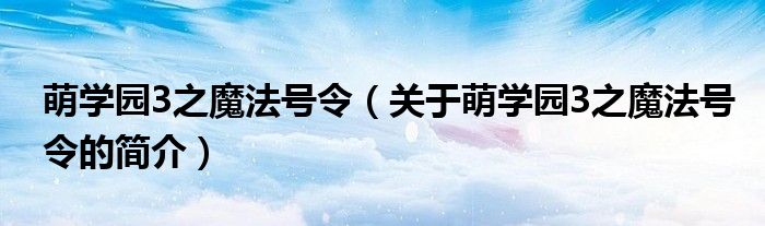 本文關于萌學園3之魔法號令的簡介就講解完畢,希望對大家有所幫助。