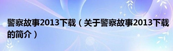 本文關于警察故事2013下載的簡介就講解完畢,希望對大家有所幫助。