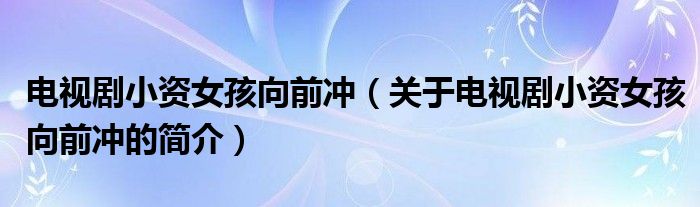 本文關于電視劇小資女孩向前沖的簡介就講解完畢,希望對大家有所幫助。