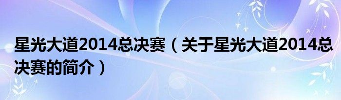 本文關(guān)于星光大道2014總決賽的簡(jiǎn)介就講解完畢,希望對(duì)大家有所幫助。