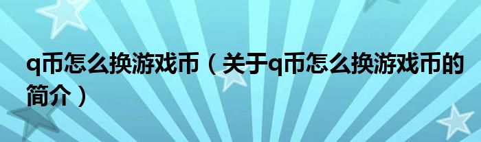 本文關于q幣怎么換游戲幣的簡介就講解完畢,希望對大家有所幫助。