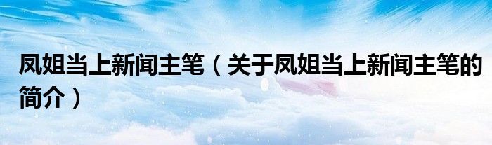 本文關于鳳姐當上新聞主筆的簡介就講解完畢,希望對大家有所幫助。