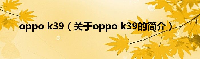 大家好,oppo k39,關于oppo k39的簡介很多人還不知道,現在讓我們一起來看看吧!