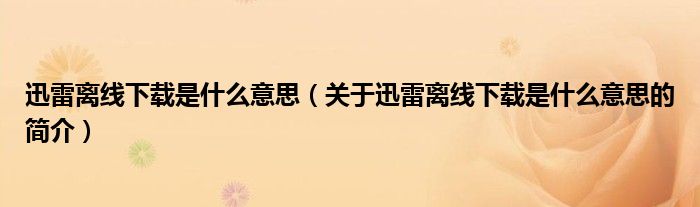 本文關于迅雷離線下載是什么意思的簡介就講解完畢,希望對大家有所幫助。