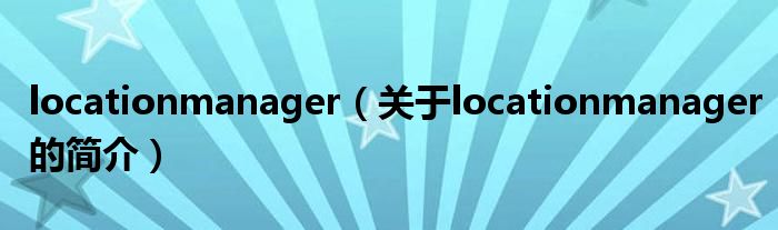 大家好,locationmanager,關(guān)于locationmanager的簡介很多人還不知道,現(xiàn)在讓我們一起來看看吧!