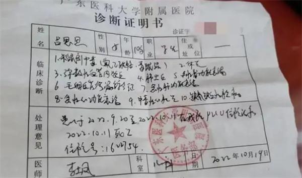 看到女兒如此嚴重,呂先生先后撥打了兩個急救電話,隨后徐聞縣第二人民醫院的醫護人員趕到現場,對呂四四進行搶救,之后就被送往醫院,當時醫生判斷可能是食物中毒,隨后救護中心的工作人員就將呂思思吃剩下的牛奶和面包拿去檢測,在9月21日的時候,呂先生接到疾控中心的電話,稱送檢的物品中面包和絲絲的嘔吐物中查出了殺鼠藥成分,呂思思在醫院治療期間,出現多次心臟,呼吸,驟停,心律失常和肺出血等癥狀,最終在10月1日因搶救無效死亡。