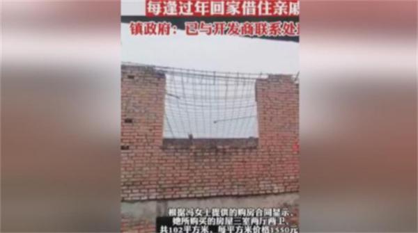 馮女士向記者說道,現(xiàn)在距離之前開發(fā)商所說的交房時(shí)間已經(jīng)過去了8年,房屋的購房款也已經(jīng)差不多付完了,但是仍然無法入住,馮女士和其丈夫常年在外打工,兩個(gè)人在2014年的時(shí)候,在趙家鎮(zhèn)購買了一套102平方米的住房,由于一直沒有封頂無法入住,所以每次兩人過年回家都要住在親戚家。