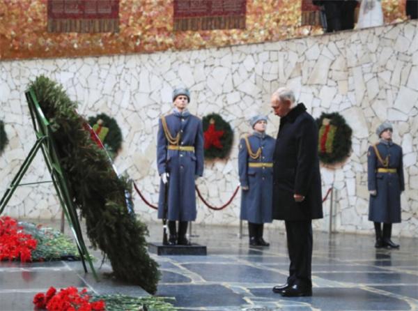 普京出席慶祝活動的當天,又參觀了位于伏爾加格勒馬馬耶夫高地的斯大林格勒保衛戰紀念館,在紀念館中先畫圈,并向陣亡的士兵默哀,之后發表講話稱,斯大林格勒保衛戰,為整個二戰的勝利奠定了基礎,將被永遠載入史冊,80年后俄羅斯再次面臨西方威脅,在此次講話中,普京表示對俄羅斯戰爭的勝利充滿信心。
