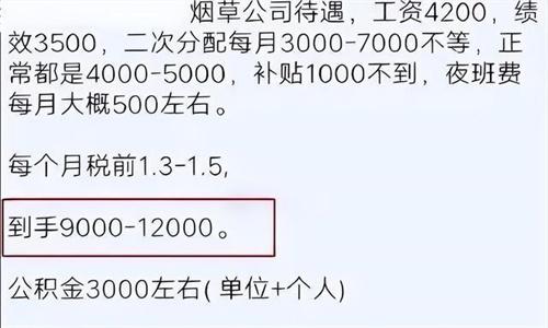 中國煙草公司也是我國資歷非常深的老牌國家企業,不管是品牌的影響力以及口碑都是行業佼佼者,中國煙草公司在2022年的時候就在我國安徽以及江西兩個省份展開了兩次公開招聘,想要成功進入到中國煙草集團上班,還是有著非常高的門檻,首先一般都要以碩士博士研究生為主,這一門檻就刷掉了,非常多的應聘者。但是能夠成功入職,還是能夠享受到非常優厚的待遇,每個月稅前的工資達到了1.3~1.5萬元,扣完養老公積金保險之后到手的工資還有9000~12000元左右。