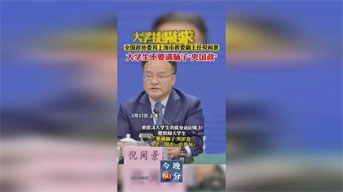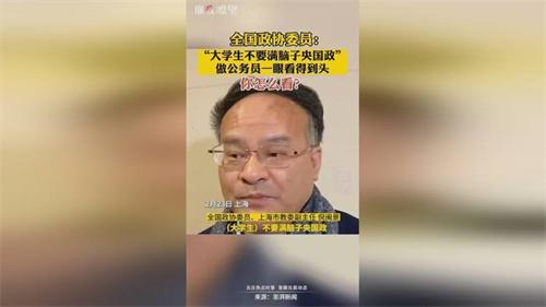 全國政協(xié)委員、上海市教委副主任倪閩景于2月23日接受采訪時(shí),提出現(xiàn)在的大學(xué)生不能滿腦子都考慮央國政,他的這一觀點(diǎn)引起了廣泛的關(guān)注。