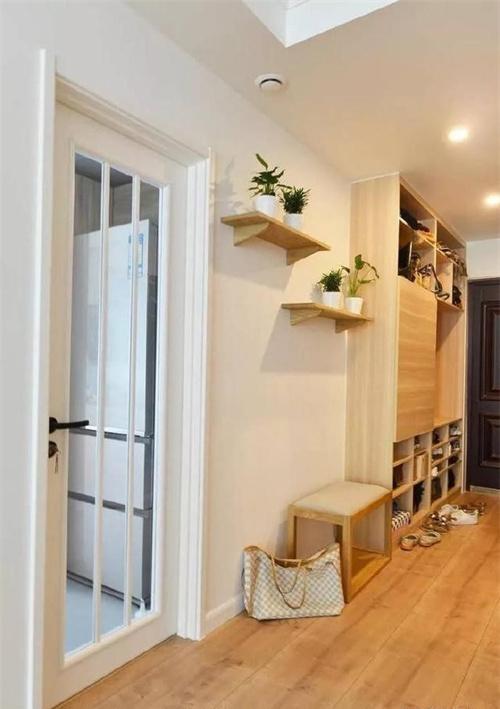 1. 玄關。入戶門一進來就是玄關的位置和大多數一樣,這一套房間在玄關處打造了一個頂天立地的收納鞋柜。多功能的鞋柜可以滿足日常的收納需求,還可以當做裝飾柜。在柜子旁邊搭配一張換鞋凳既暖心又實用。