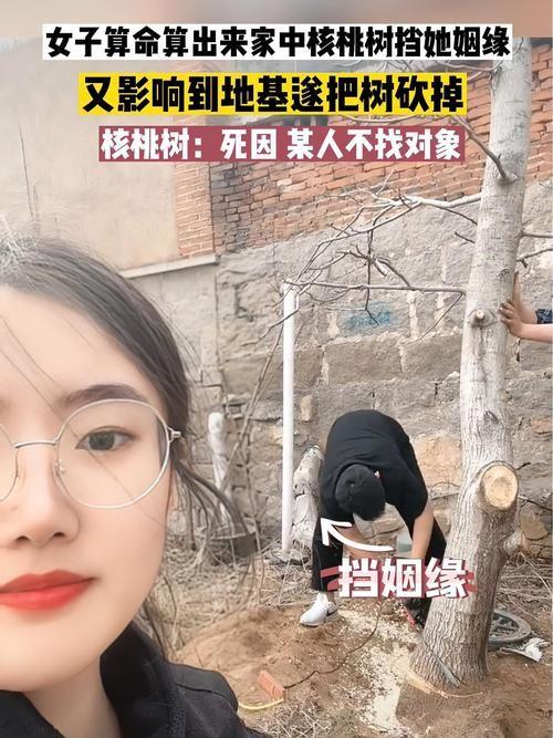 山東日照,一名24歲的女孩算命得知家中的核桃樹太高,擋了他的姻緣。其父親和弟弟匆忙回家將樹砍掉。據該女孩介紹稱這棵核桃樹其實也影響了家里的地基,所以家里人才一致決定把它砍掉,只是覺得有些可惜,這棵核桃樹所結的果實還挺好吃的,以后沒有機會吃了。
