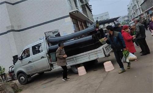最近有網友反映在四川省的自貢市一個鄉村世紀上有商販竟然在公開叫賣不銹鋼棺材,根據當地的村民稱,當時確實有不少老人都在觀看,但是沒有人去購買,誰也不會到街上趕集買口棺材回家去,根據網友的視頻顯示在3月29日,有一輛貨車拉著兩口黑色的棺材在實際上進行售賣,而且還用高音喇叭播放著不銹鋼棺材的宣傳用語,該事件發生在四川省自貢市富順縣鄉鎮的街市上,有一名商戶稱當天賣棺材的貨車就在自己的斜對面,這也是自己第1次見到有人在街上收買棺材的。