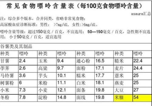 根據研究表明,食物攝入的嘌呤占到人體尿酸總量的20%,有80%的尿酸是人體內部的細胞核分解所產生的,由于不良的生活習慣就會造成過多尿酸的分泌,除此之外,腎臟作為尿酸主要的排泄器官,如果腎臟出現疾病,也可能導致尿酸的急劇升高,目前按照嘌呤含量,可以將食物分為低嘌呤食物中嘌呤食物以及高嘌呤食物。