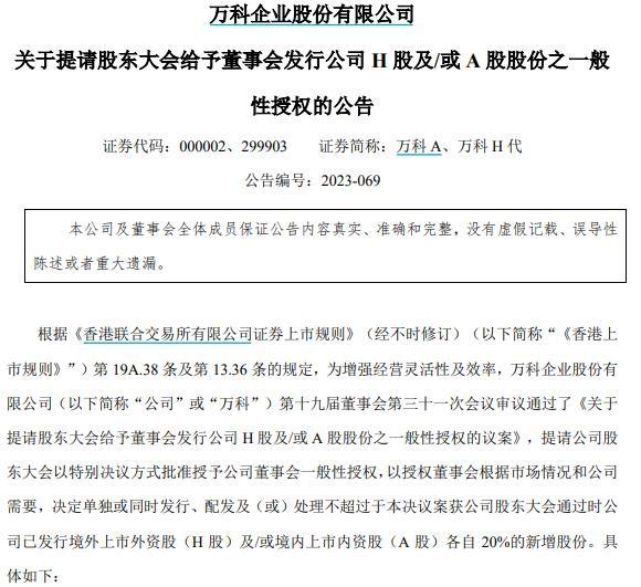 5月29日,萬科A正式對外界發(fā)布了公告,在公告中萬科a表示已經(jīng)向公司大股東進行了提請。本次股東大會上萬科a正式向股東們進行了提醒,提醒他們向公司董事會進行授權(quán),獲得授權(quán)之后的董事后,再發(fā)現(xiàn)目前市場的情況出現(xiàn)變化,以及公司的需求出現(xiàn)變化時,將有權(quán)利可以去單獨或者是發(fā)行處理公司已經(jīng)在境外正式發(fā)行的外資股。以及在境內(nèi)成功上市的內(nèi)資股,同時對于外資股以及內(nèi)資股,還擁有20%新增股份的權(quán)利。