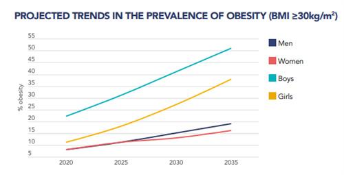 肥胖癥在全球范圍內都成為了普遍需要應對的較為嚴重的公共問題的一個內容,世界肥胖協會最新所發布的數據能夠看到,大約到2035年全球范圍內有超越40億人是屬于肥胖階段或者體重超重的,占據總人口數量大約51%。
